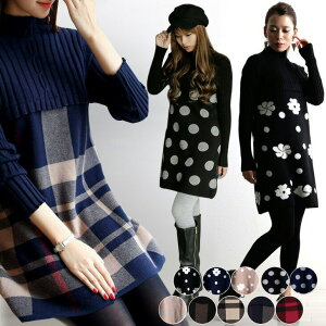楽天1位 厚手 チェック×ニット切り替えワンピース タータンチェック リブニット ハイネック ニットワンピ チェックワンピ レディース ニット ワンピース ミニ丈 ショート丈 チェック 【9032-gt622】【予約販売:10月23日入荷予定順次発送】メ込